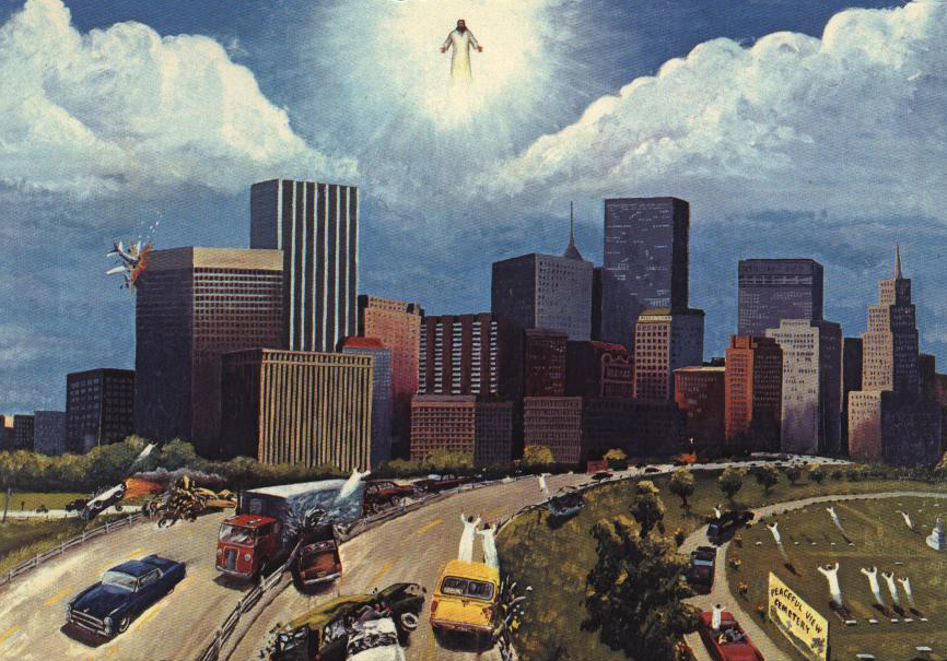 [Look at those driverless cars and pilot-less airplanes crashing. Look at those dead bodies bursting out of their graves. This is a horror show. The Dallas skyline has since improved as can be seen here. Spoiler alert: Jesus has not yet arrived, and now has a list of competitors.]